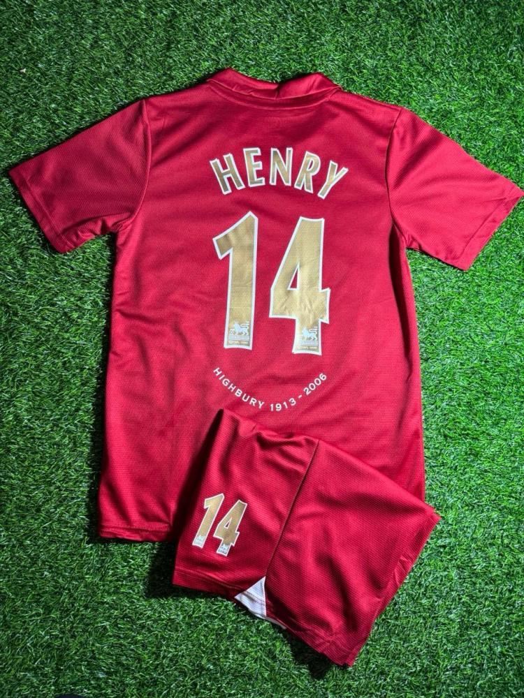 عِش أجواء الزمن الجميل مع طقم أرسنال الكلاسيكي بإصدار خاص لأسطورة النادي “تييري هنري” رقم 14. تصميم يجمع بين الفخامة والحنين، باللون الأحمر الملكي مع لمسات ذهبية تعكس روح الحقبة الذهبية للنادي.