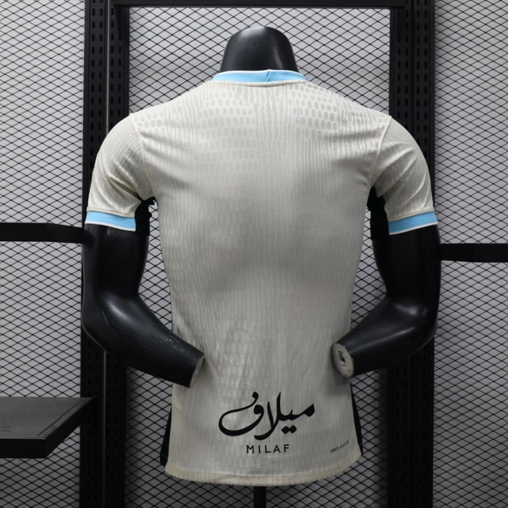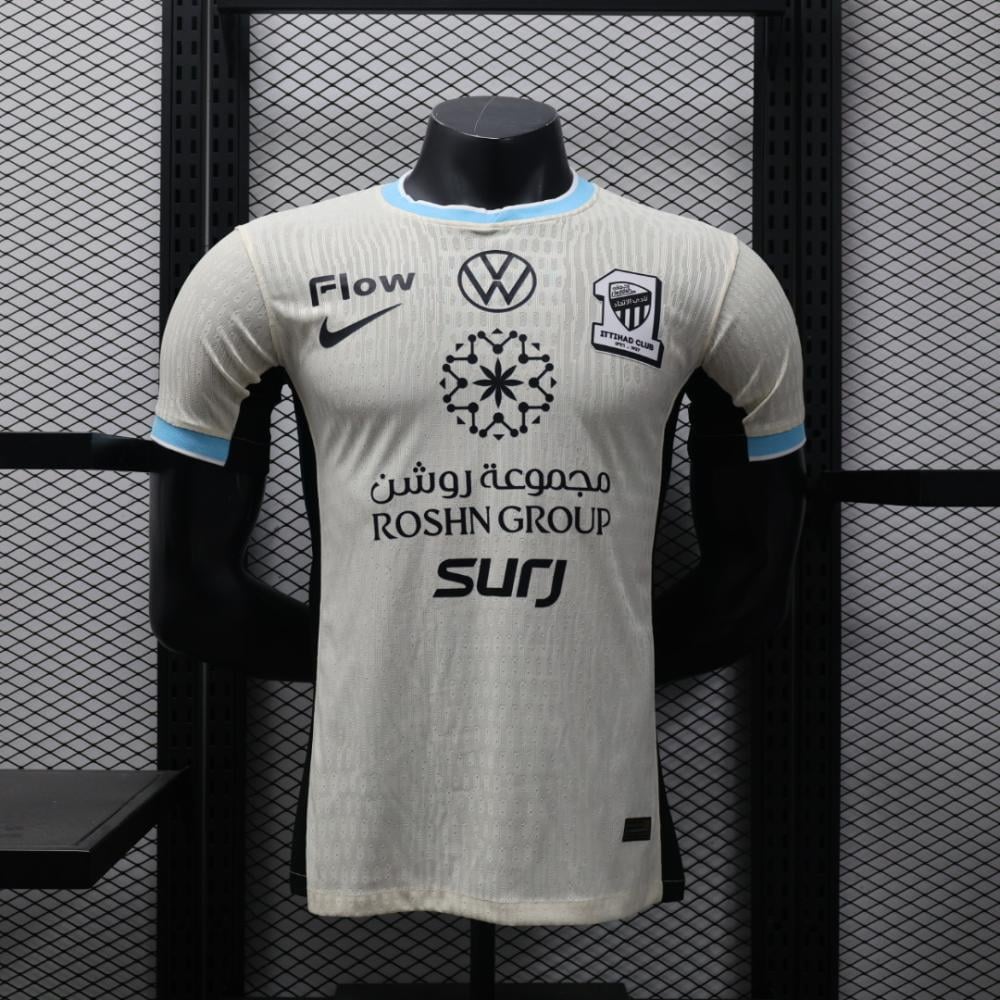 تيشيرت نادي الاتحاد الاحتياطي موسم 25/26 فئة اللاعبين من نايك بتقنية Dri-FIT ADV لتهوية قصوى وأداء مباريات. تصميم بلون كريمي مع حواف سماوية، شعارات Flow وVolkswagen وRoshn Group وsurj مطبوعة حراريًا، وشعار الاتحاد بصيغة سيليكون مرتفعة. قصّة Match/Slim Fit خفيفة ومرنة مع ثقوب ميكرو للتهوية، أكمام شبكية، وشارة ENGINEERED أسفل القميص. خامة بوليستر %100. مناسب للتمارين والمباريات. تعليمات العناية: يُغسل مقلوبًا بماء بارد دون مجفف